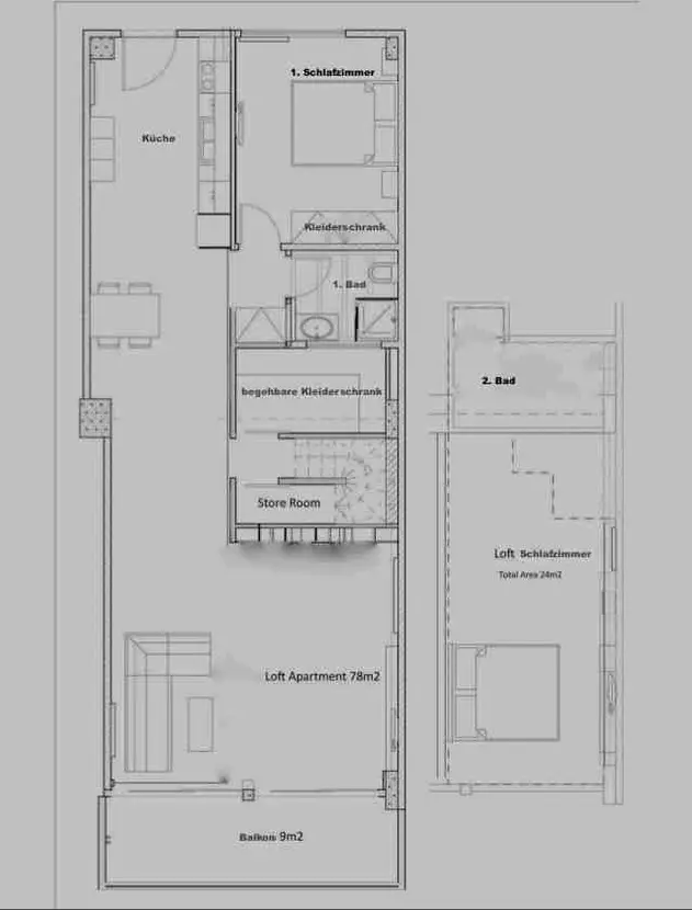 Extra opbergruimte, inbouwmeubilair en een volledig uitgeruste keuken zijn geïntegreerd in de woonruimte, waardoor deze loft een ideale woning is voor maximaal 5 personen.