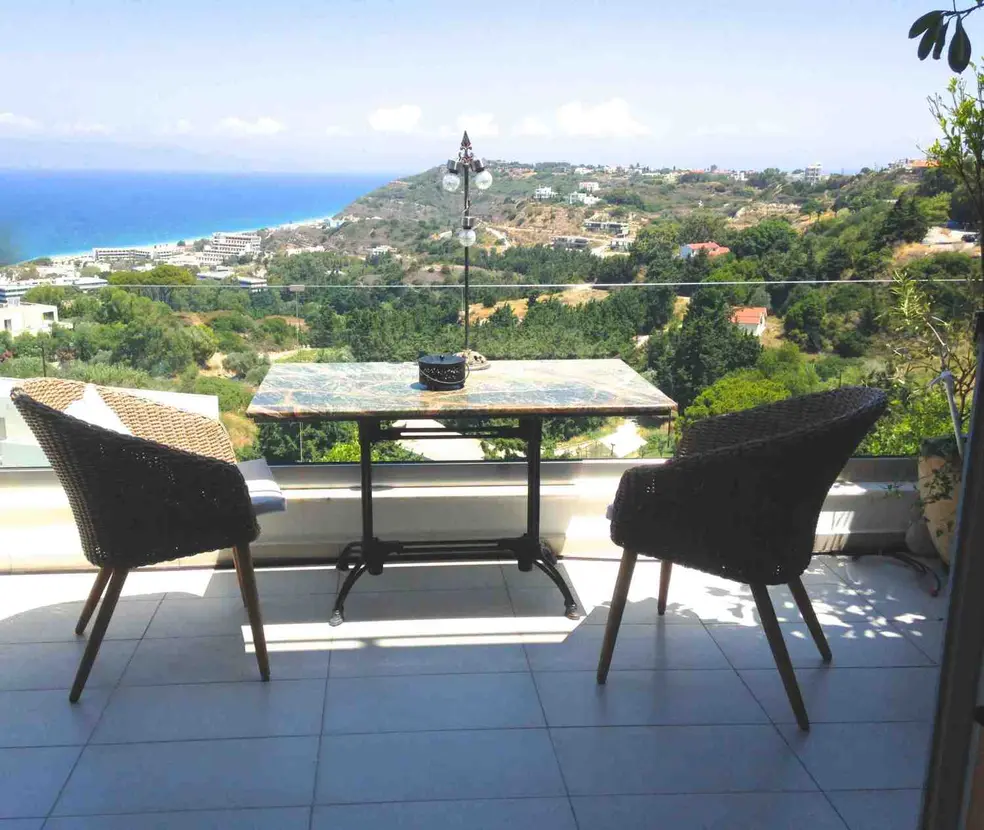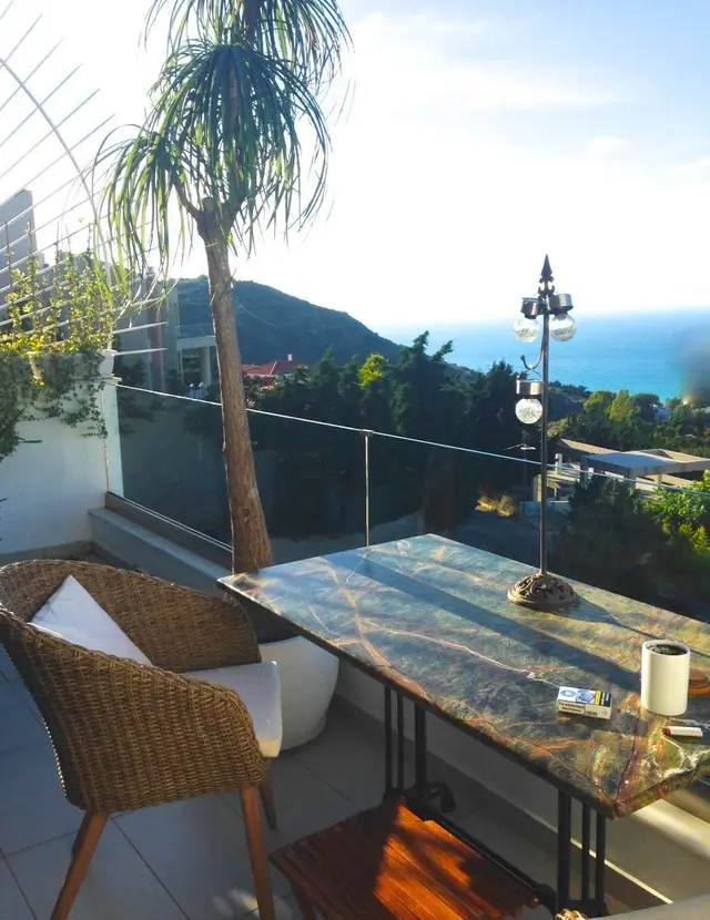 Een balkon met adembenemend uitzicht op de zee en de bergen maakt het geheel compleet en laat het hart sneller kloppen.