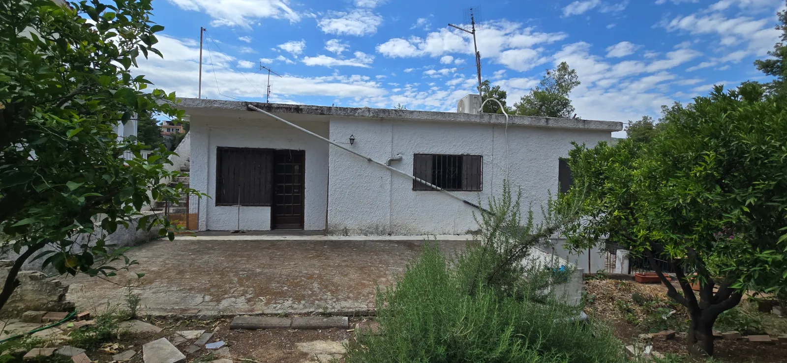 De eerste verdieping is volledig gerenoveerd. De begane grond is nog niet afgewerkt. Dit vakantiehuis in Nea Politeia, Oropos, biedt een unieke mogelijkheid tot maatwerk. De woning, gebouwd in 1965, staat op een ruim perceel van 500 vierkante meter en bestaat uit twee verdiepingen. De indeling op de begane grond biedt veelzijdige woonmogelijkheden, terwijl de afwezigheid van verwarming flexibiliteit biedt voor toekomstige renovaties. Met energielabel F is er potentieel voor verbetering van de energie-efficiëntie met moderne upgrades.