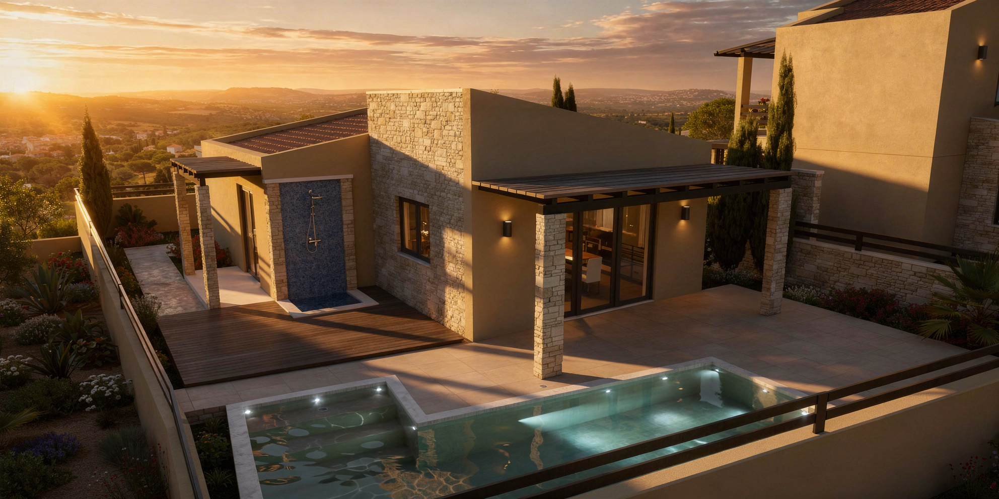 De villa’s beschikken over een interne trap die elegantheid toevoegt aan het ontwerp, terwijl de veranda u uitnodigt om buiten te ontspannen en te genieten van de frisse lucht. Met een perceeloppervlakte van 350 m² heeft u voldoende ruimte om te genieten van uw eigen tuin, waar u kunt ontspannen of entertainen onder de zon.