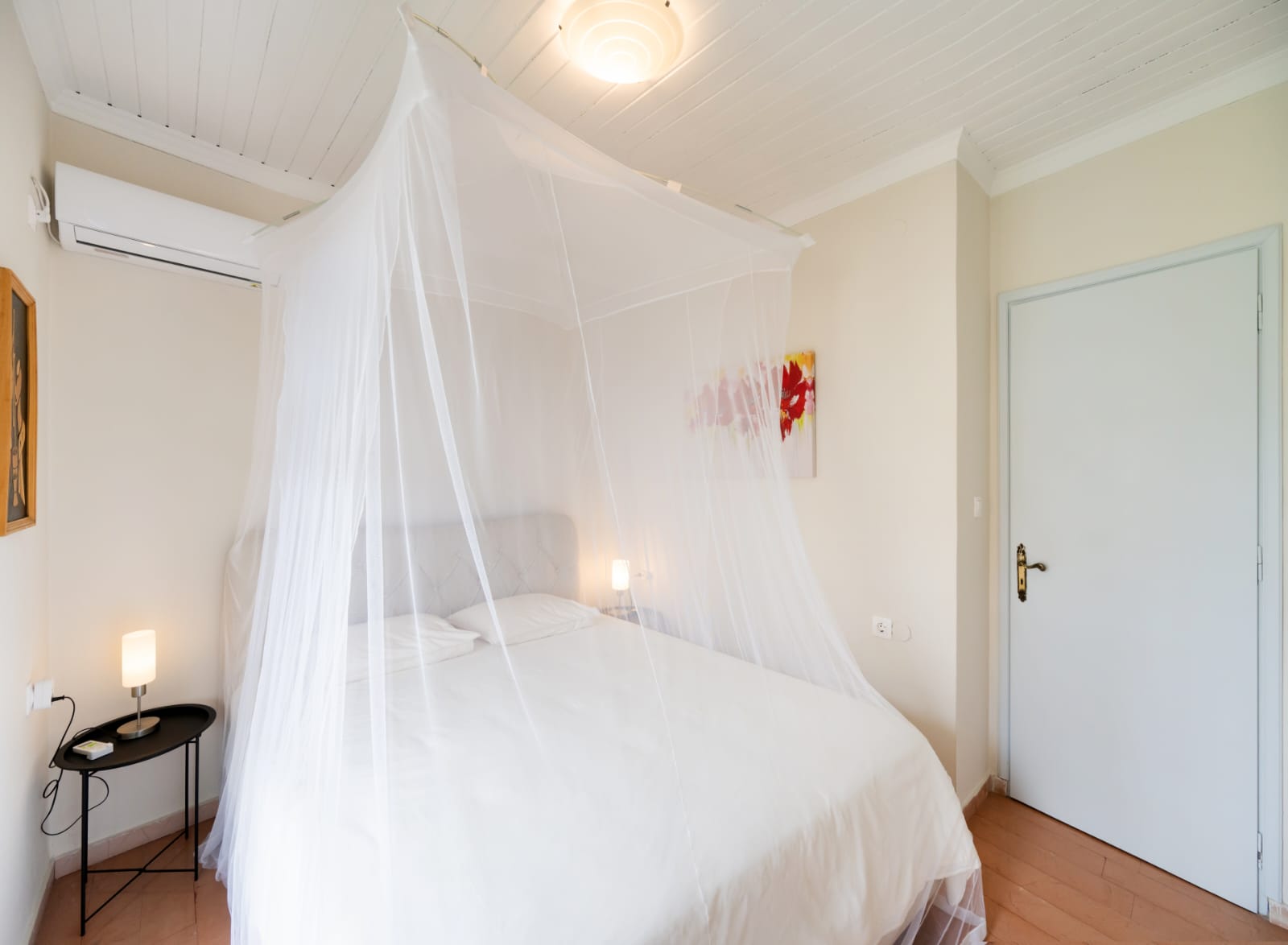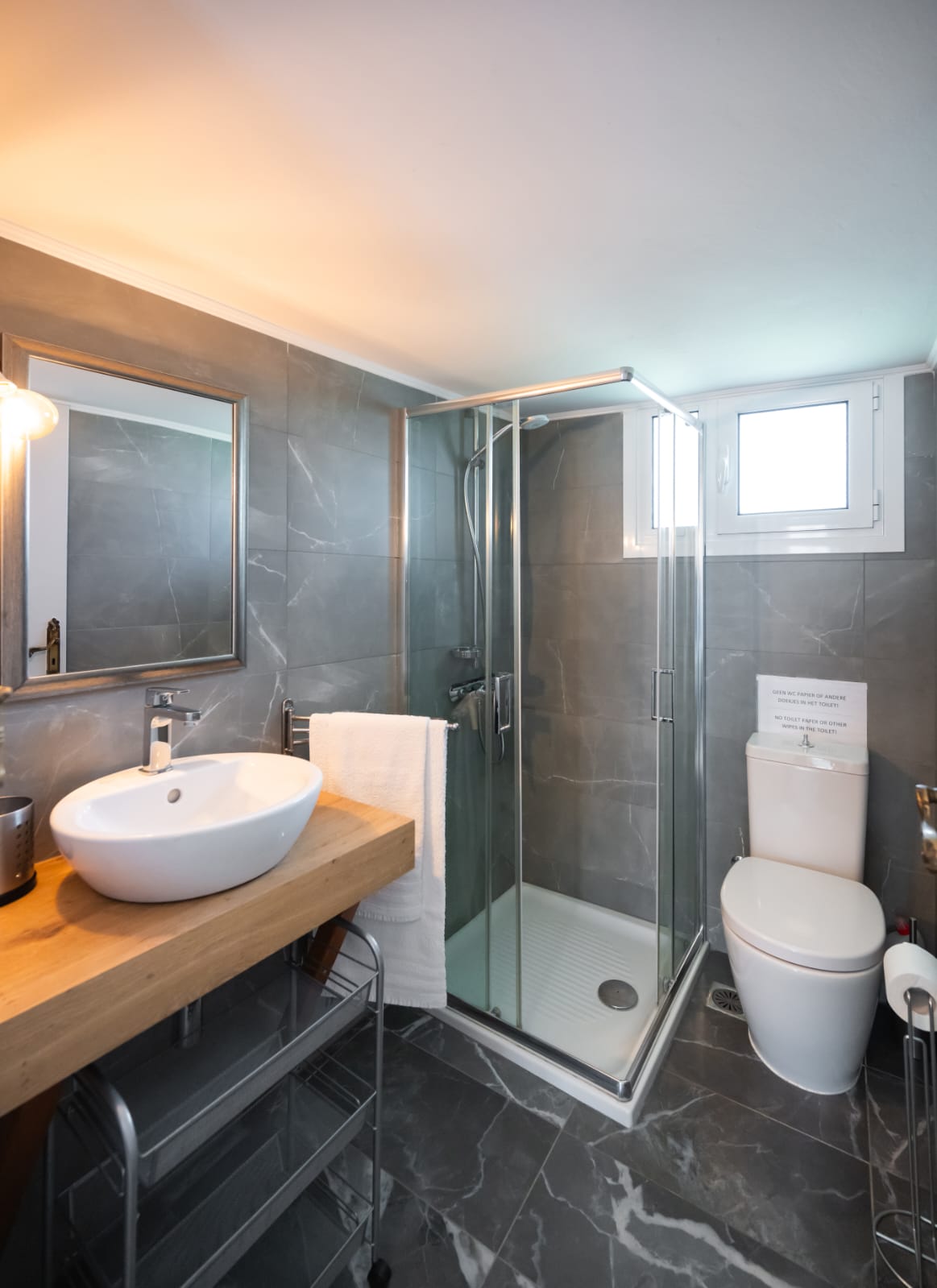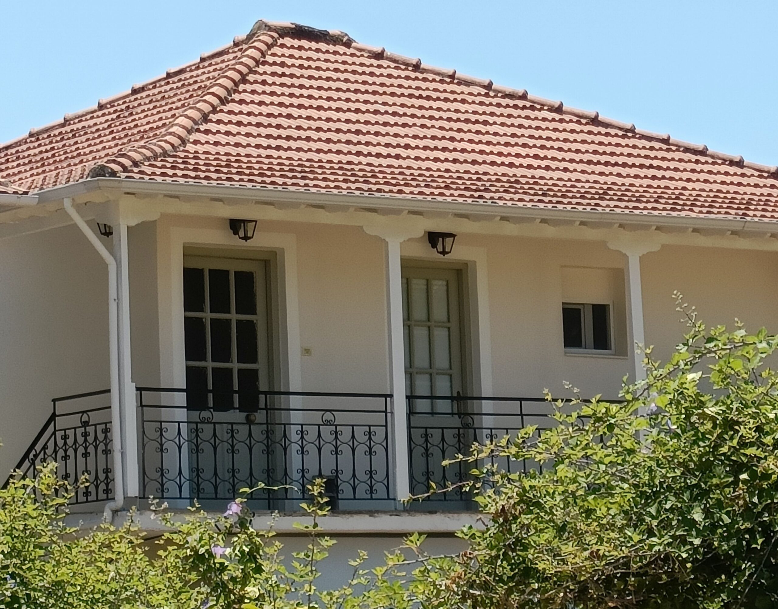 De bovenverdieping is eveneens volledig gerenoveerd, maar uitgevoerd in een traditionele en warme stijl met houten kozijnen, deuren en een houten overkapping rondom de veranda.