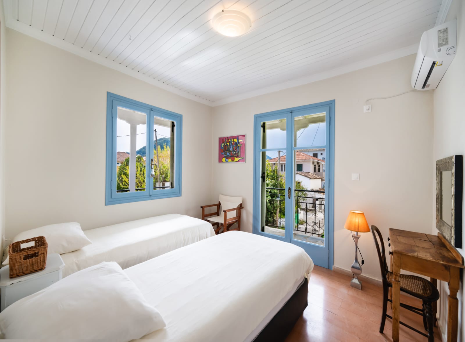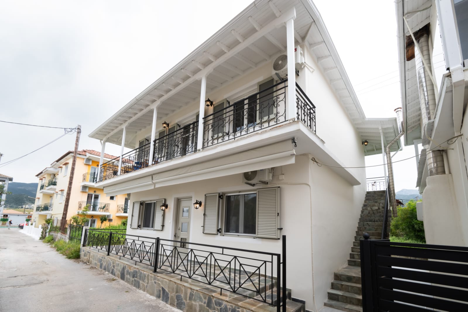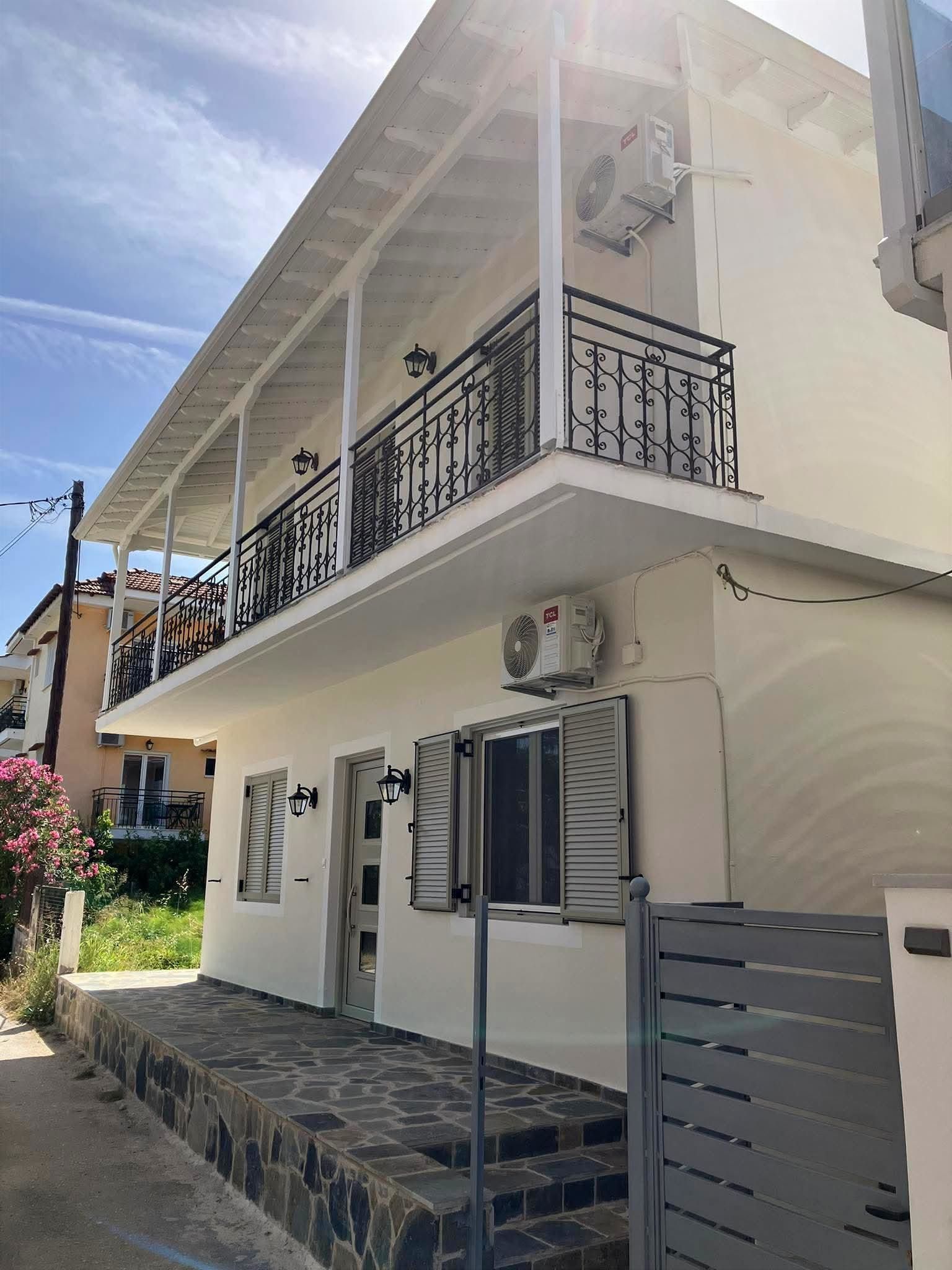 Op slechts 200 meter van het strand en de levendige boulevard van Nidri bevindt zich dit uitzonderlijk goed onderhouden pand op een rustige en gewilde locatie.