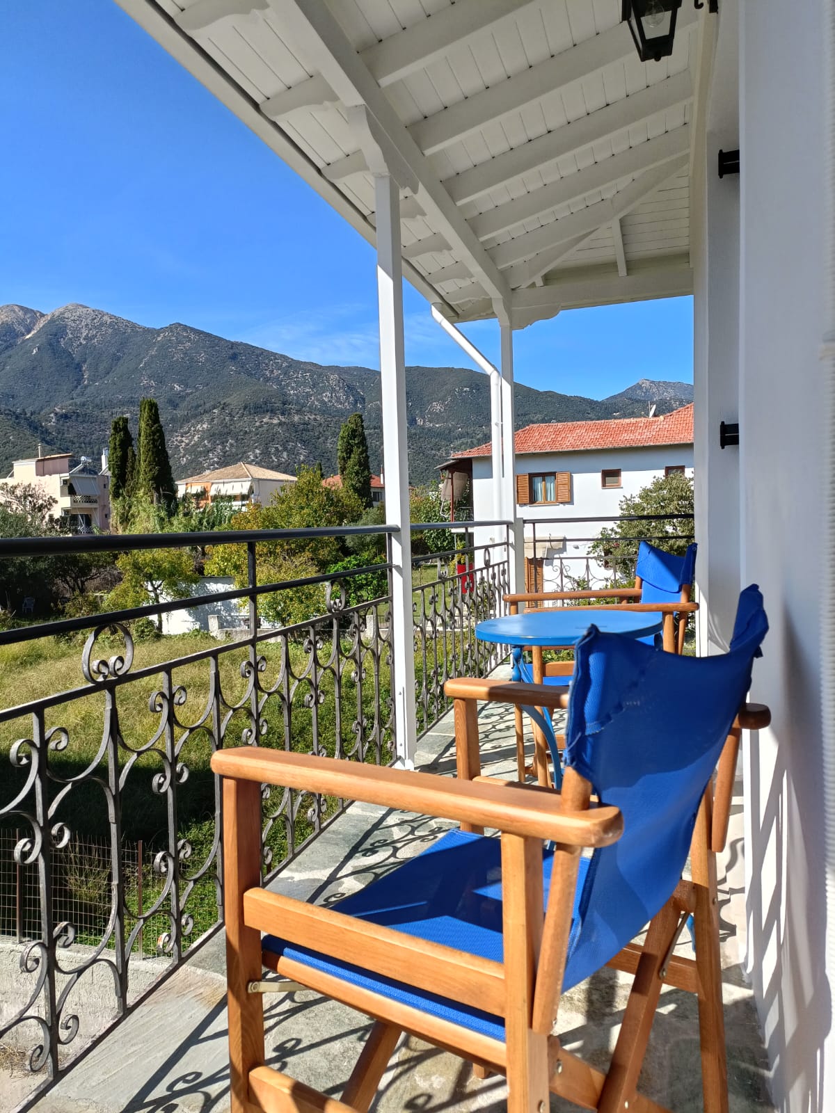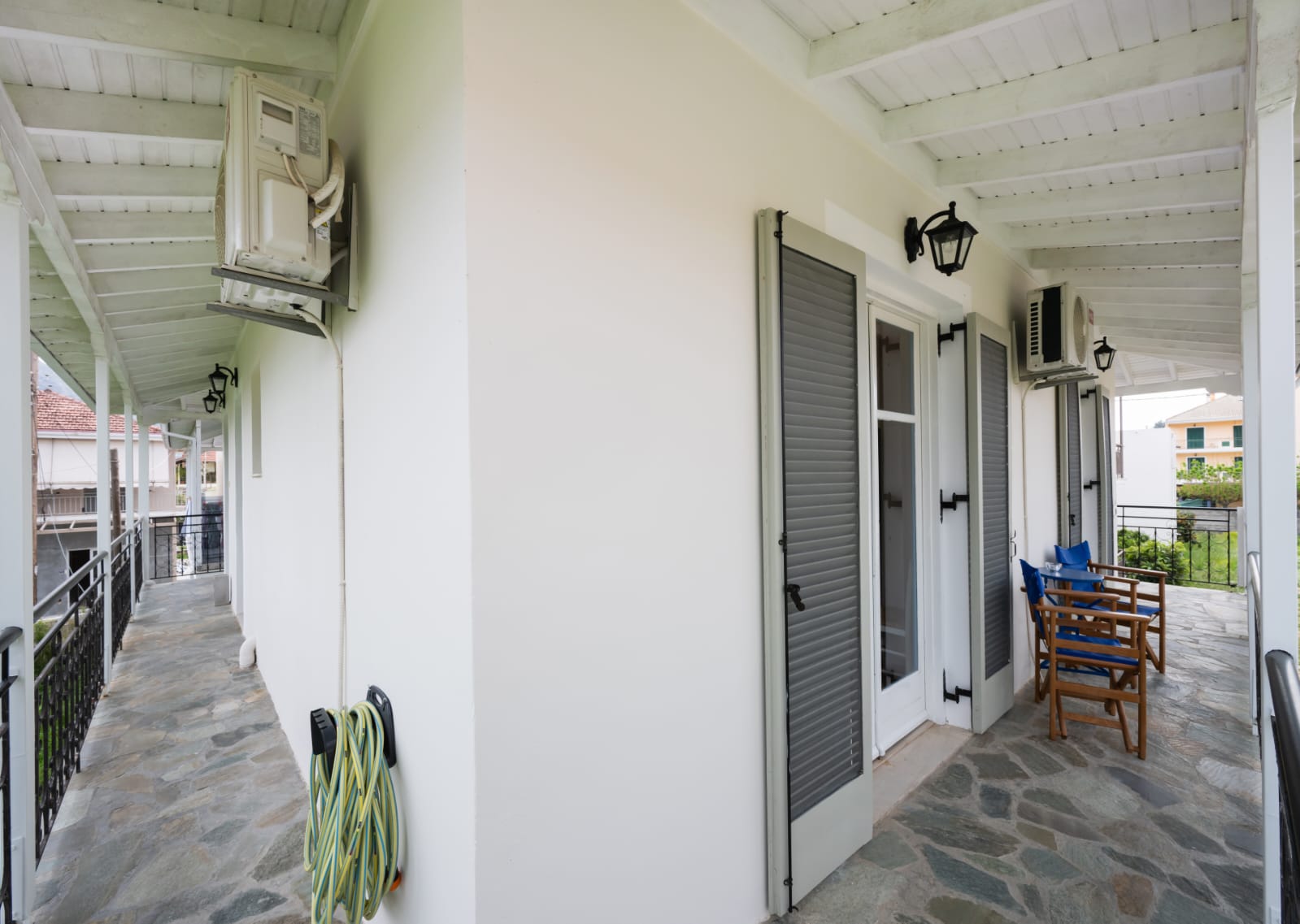 Beide verdiepingen zijn voorzien van rondlopende veranda’s, waardoor er de hele dag door zon of schaduw opgezocht kan worden.