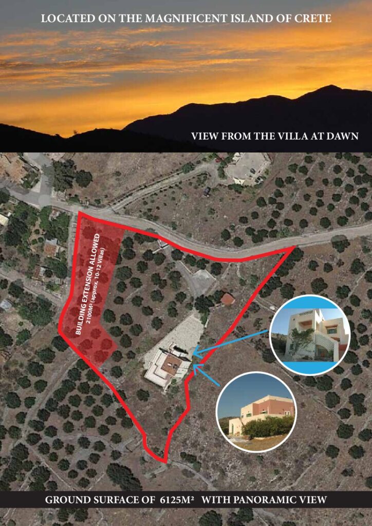 Deze privé-villa op Kreta biedt een ruime woonoppervlakte van 310 m², aangevuld met 150 m² aan balkons, ideaal om te genieten van het mediterrane klimaat. De woning beschikt over een eigen watervoorziening en zonnepanelen, waardoor deze geschikt is voor ecotoerisme of als vakantiehuis. Met de mogelijkheid tot uitbreiding tot 2.100 m² is er ruimte voor de bouw van circa 10-12 extra villa’s.