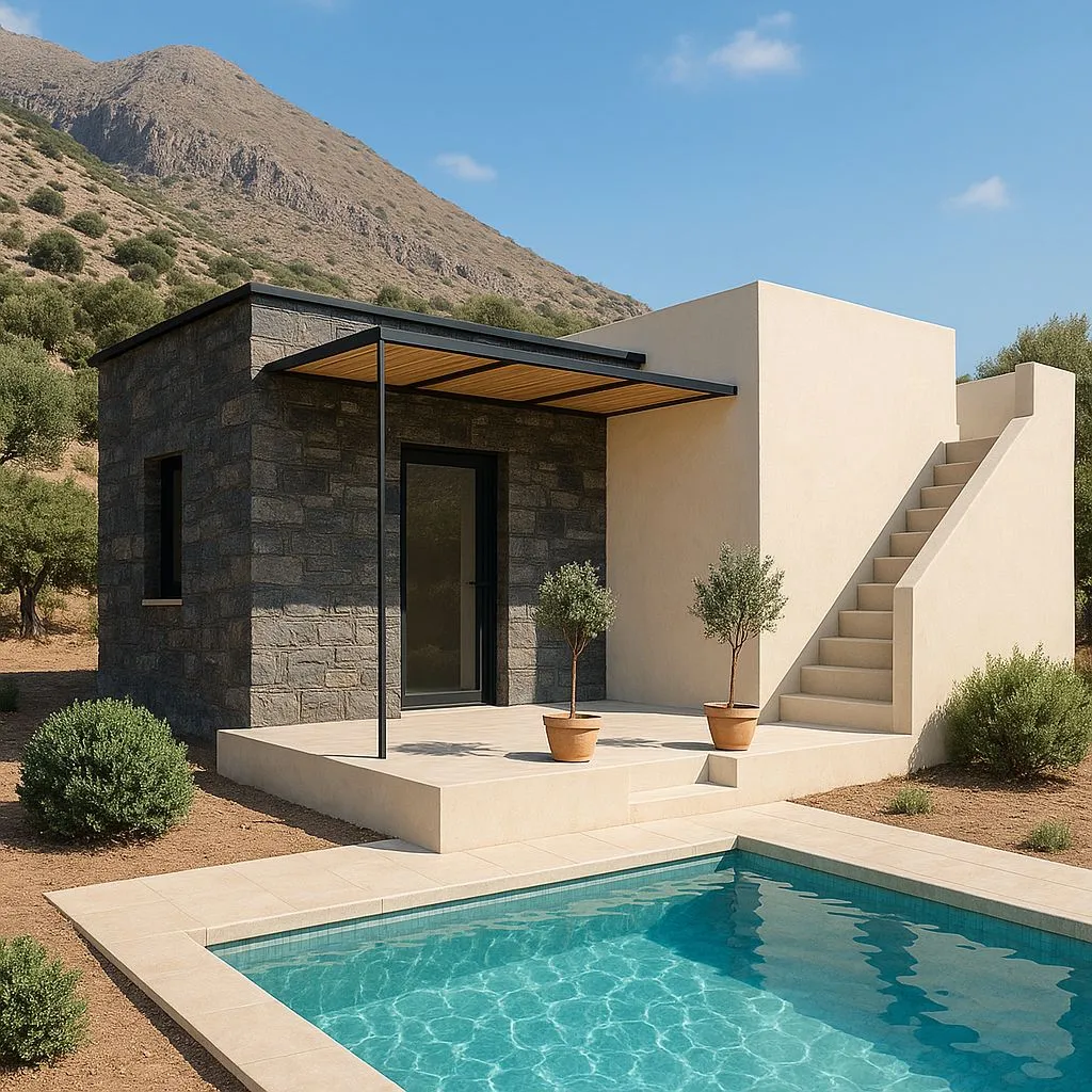 Deze villa in aanbouw in Agia Paraskevi, Kreta, biedt een serene woonervaring met twee slaapkamers en een ruime open woon- en eetkamer. Gebouwd met lokale grijze steen en natuurlijke materialen, is de woning ontworpen om een warme sfeer te creëren. De woning beschikt over een grote badkamer en een privézwembad om te ontspannen. De woning is gelegen in het dorp en biedt een prachtig uitzicht op het strand van Triopetra, bekend om zijn kristalheldere water en goudgele zand.