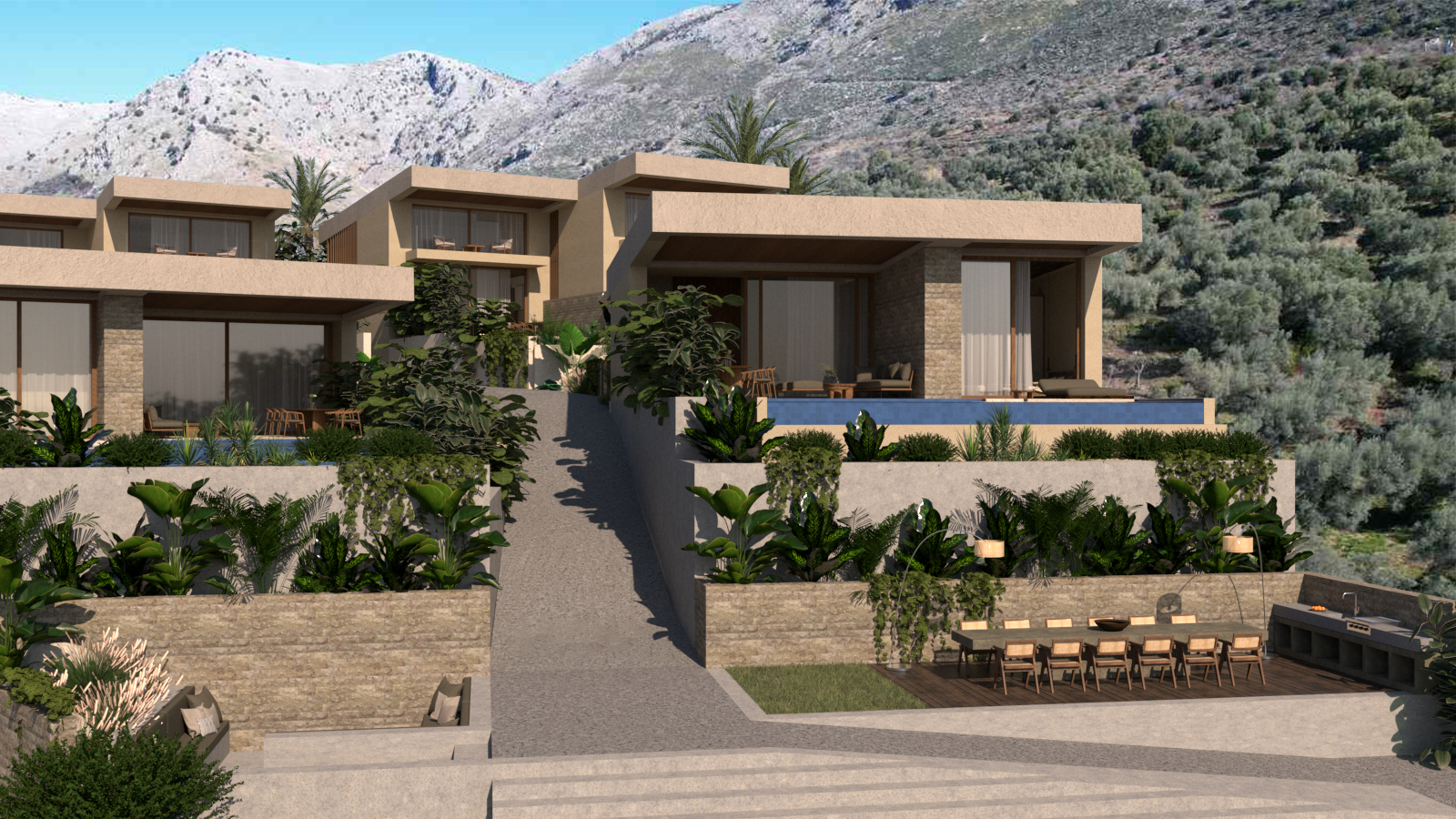 Architectonische visie ontmoet natuurlijke schoonheid: de villa’s zijn strategisch op de helling gepositioneerd om een harmonieuze overgang te creëren tussen gesloten, halfopen en open ruimtes, onder één verfijnd lessenaarsdak. Uitgestrekte terrassen, schaduwrijke balkons en aangelegde tuinen nodigen uit om buiten te leven, terwijl brede openingen de grens tussen binnen en buiten doen vervagen.