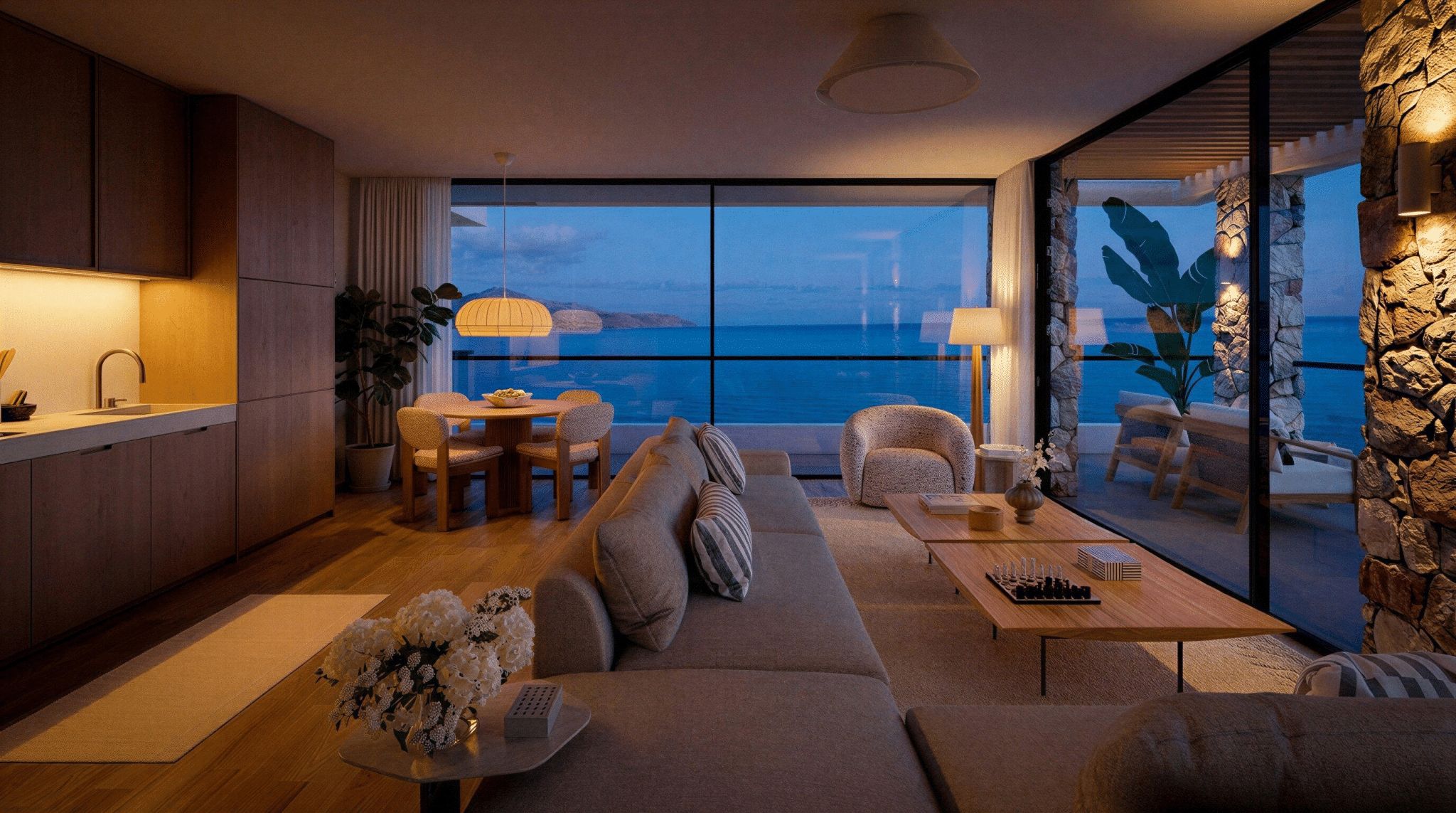 Stel je een plek voor waar design en sereniteit samenkomen — waar het ritme van de zee en de kracht van de bergen de perfecte balans vormen voor modern wonen.
