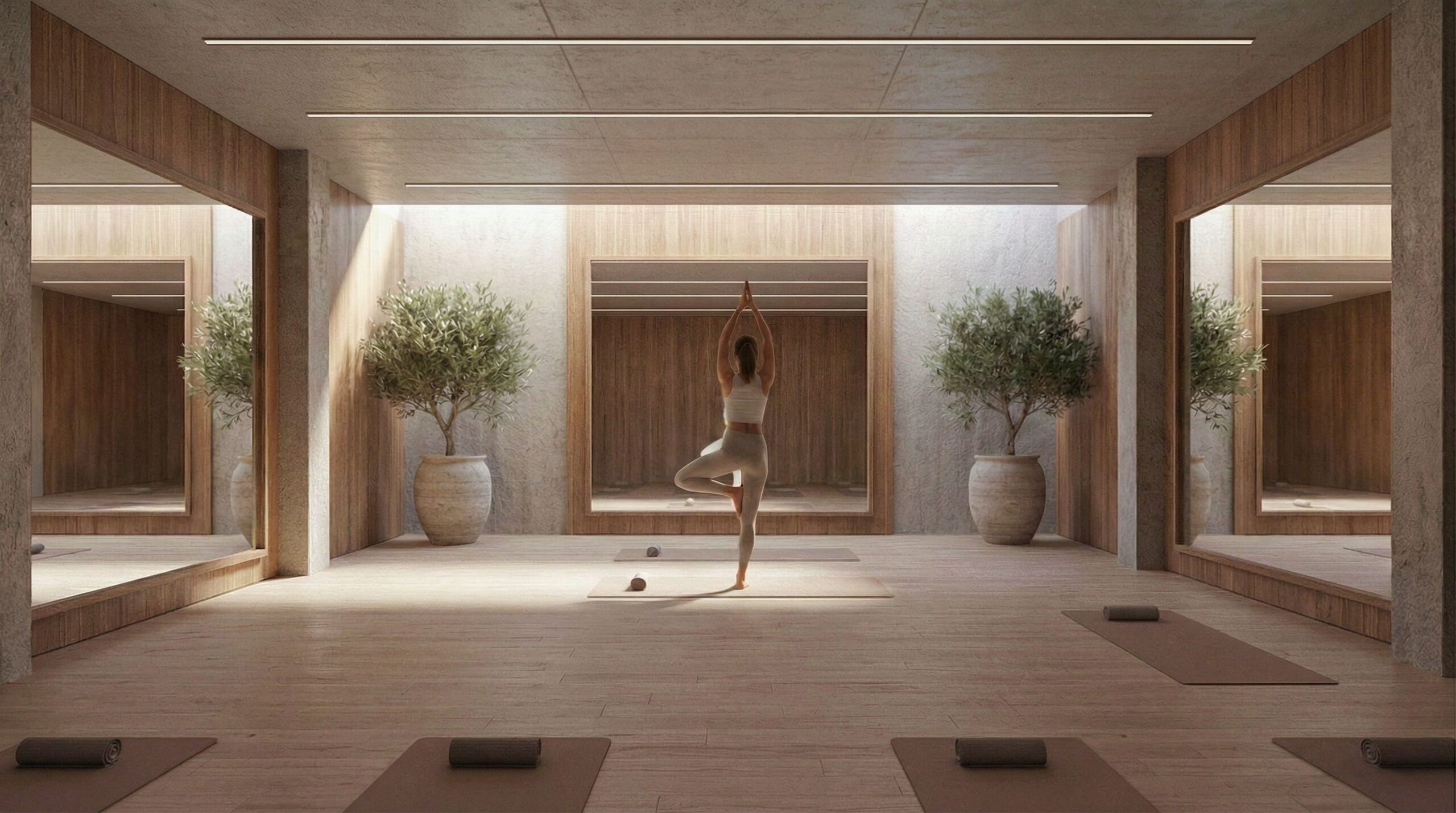 • Een yogastudio met natuurlijke materialen en een rustgevend design